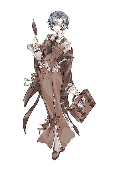 霧灰髮咖啡瞳,男生型的短髮,兩側有編髮。